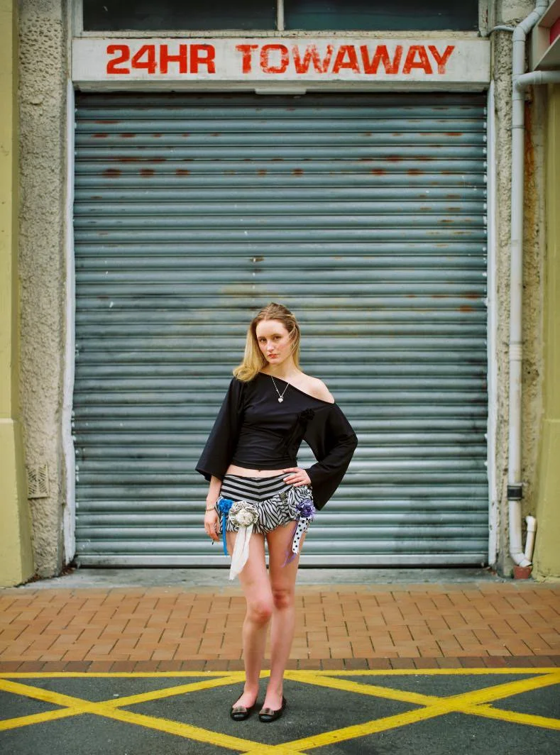 A long sleeve cotton tee with wide sleeves and a fitted body.